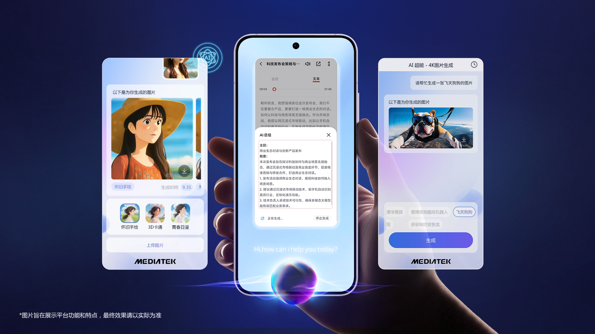 同时,MediaTek 与生态伙伴共同完成模型训练与适配,使芯片能力能够顺畅接入用户实际应用,真正赋能广泛生态伙伴,让端侧AI的先进能力可以规模化、实时地落地在每一台设备中。