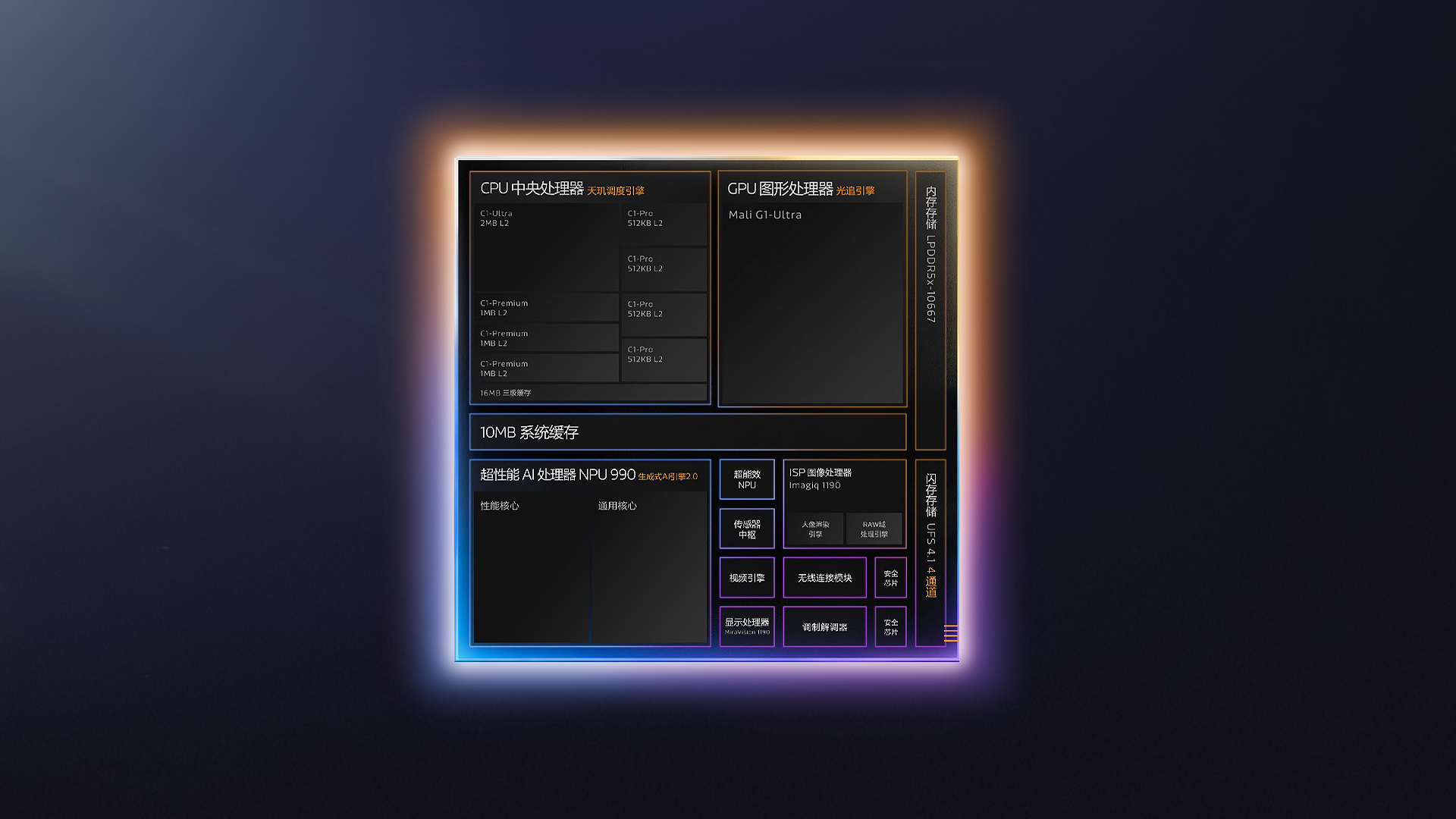 此外,天玑9500旗舰芯采用3nm工艺、全大核CPU与新一代 GPU,还构建了强能效调度系统,确保AI推理与游戏等高负载任务并行时依旧维持性能与能耗的最佳平衡。通过面向端侧模型优化的NPU、高带宽、多级缓存与快速内存访问机制,减少数据在处理链路中的延迟与功耗。